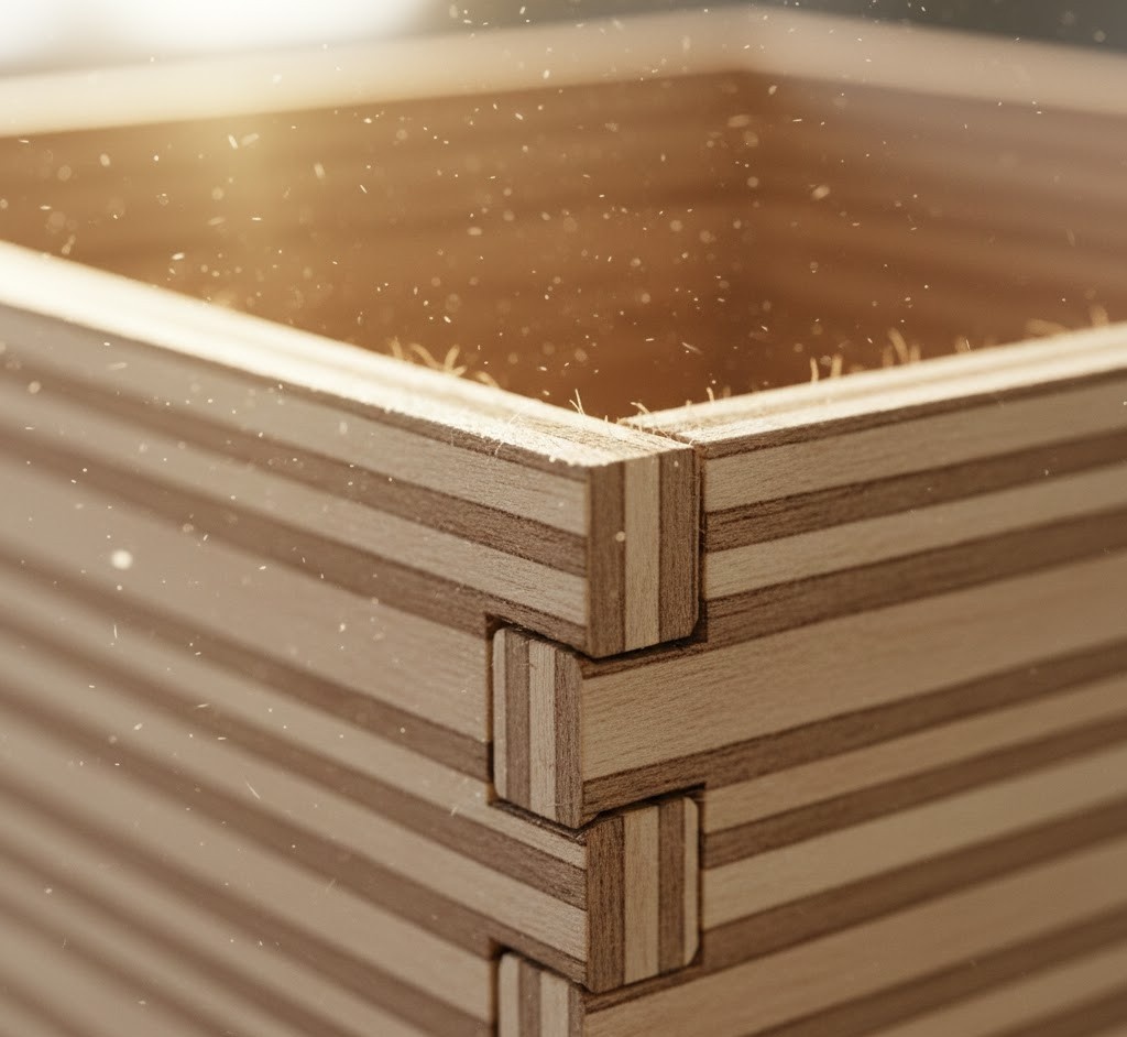 Если вы переборщите с компенсацией реза (Kerf), вы не сможете собрать коробку, не сломав её. Фанера не резина. Если приходится забивать молотком — вы ошиблись в настройках. Идеальная посадка — это щелчок (press-fit).