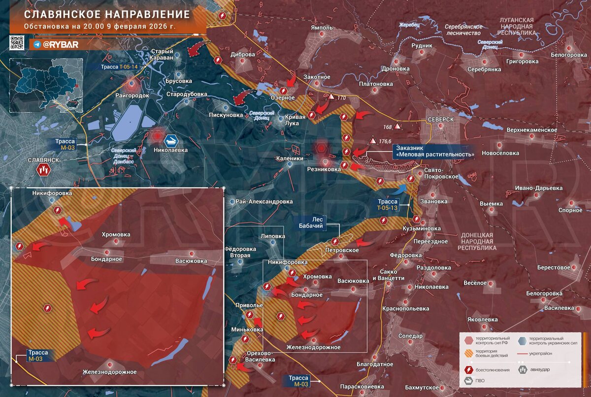 На юге Славянского направления вновь фиксируются признаки продвижения ГВ «Юг» в районе Бондарного. Под контроль ВС РФ перешли несколько прилегающих к селу лесополос. По некоторым данным, штурмовики также заняли «карман» между Зализнянским и Васюковкой. 🔸Российские подразделения обрабатывают позиции противника в окрестностях Рай-Александровки и Николаевки, на рубеже систематически жгут артиллерию. Авиация регулярно наносит удары по Славянску. Недавно там была поражена Славянская ТЭС — на энергообъекте обрушилась одна из труб. ❗️Противник периодически предпринимает контратаки в районе Резниковки продолжаются бои. Украинские формирования на этом участке ещё не исчерпали резервы, поэтому говорить о скором начале битвы за Славянск пока преждевременно. Вместе с тем, можно говорить о боях на дальних подступах — как на данном направлении, так и на соседнем Лиманском. 🔸Если у Вас есть дополнения по обстановке, Вы хотите, чтобы мы подсветили успехи Вашего подразделения, — Вы всегда можете напи