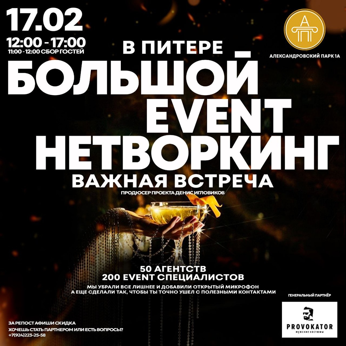 🤝 #17февраля2026 #СанктПетербург #офлайн ⏰ 11:00-17:00 📍 Ресторан «Александровский парк» Александровский Парк 1А 💰 Стоимость от 1.200 руб, для агентств бесплатно по предварительной регистрации ❗️ Регистрация для специалистов 🎤 БОЛЬШОЙ EVENT НЕТВОРКИНГ ⠀ ⠀ 50 event и свадебных агентств и 200+ event специалистов ⠀ Мы знаем, как обычно выглядит нетворкинг: много людей, мало смысла, куча визиток и ноль продолжения. Поэтому мы делаем другую встречу. ⠀ Мы приглашаем фотографов, видеографов, диджеев, ведущих, артистов, кейтеринги и площадки. Только живое общение и полезные контакты. ⠀ Что будет: ⠀ — организованный нетворкинг с агентствами и подрядчиками ⠀ — возможность выступить в формате открытый микрофон ⠀ — минимум рекламы и отвлекающих лекций ⠀ — нужное окружение и легкая атмосфера ⠀ ⠀ 🎟 Агентствам — вход бесплатный (по предварительной регистрации) ⠀ Спецам - билеты по ссылке регистрации В четверг повышение цены 🔻 📌 Добавить в Google Календарь Афиша профессиональных мер