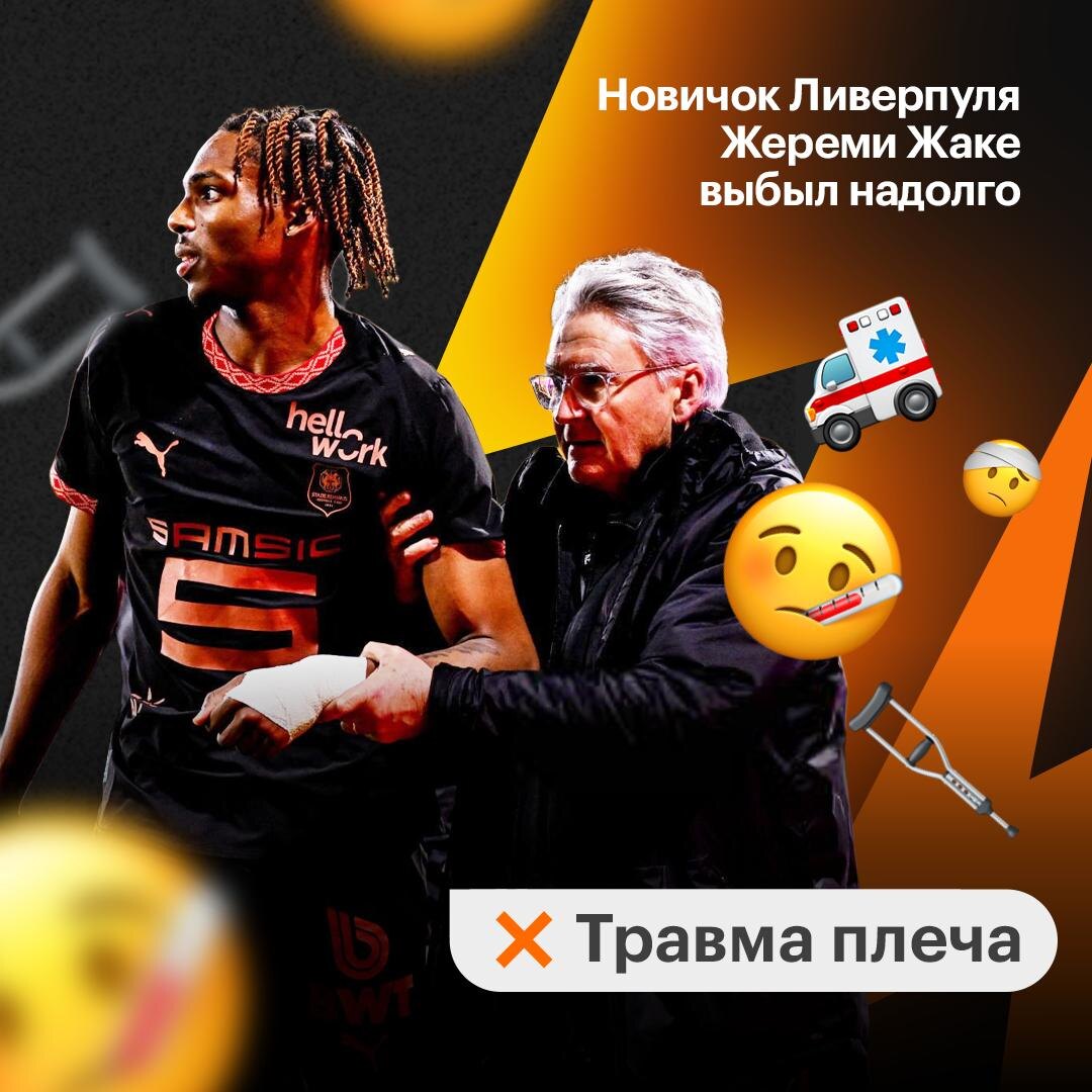 Новичок Ливерпуля Жаке получил травму 🏴❌ Главный тренер Ренна Хабиб Бейе, за который Жереми продолжает выступать до конца сезона, заявил о серьезной травме плеча у пацана. Неделю назад француза купили мерсисайдцы за космические 7️⃣2️⃣ млн евро. 20-летний неудачно парнишка упал во втором тайме матча с Лансом. Здоровья!