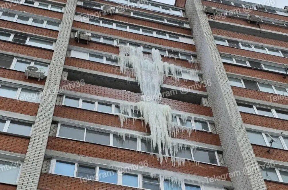 В Воронеже на фасаде дома №44а на улице Лётчика Колесниченко образовался гигантский ледяной водопад. По словам местных жителей, причиной стал прорыв батареи в пустующей квартире. Вода залила нижние этажи и балконы, а после того как ее перекрыли, но не слили полностью из системы, на доме образовались огромные опасные сосульки. Одна из них уже обрушилась на козырек салона красоты. Горожане жалуются, что не могут дозвониться до управляющей компании, а в МЧС, по их словам, посоветовали самостоятельно сбивать ледяные глыбы. Инцидент произошел на следующий день после того, как сосульки, упавшие у торгового центра «Европа», травмировали ребенка-инвалида, получившего ушиб головы. По тому факту уже возбуждено уголовное дело. Фото – «Мой и твой Воронеж».