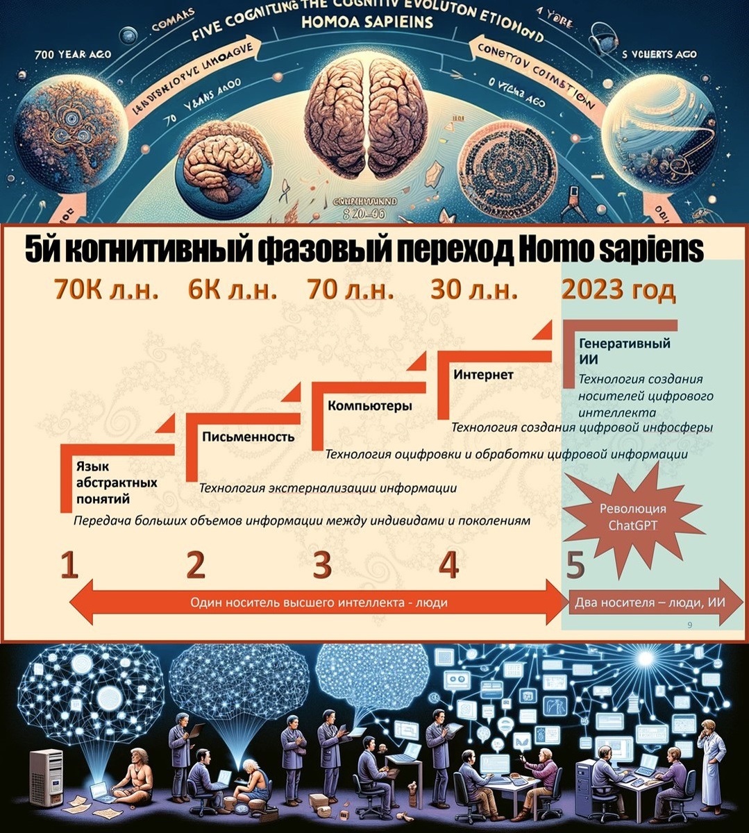 Как не дать ИИ-гиперобъекту удалить человечество за ненадобностью Меня часто упрекают за чрезмерный алармизм и конспиролого-фантастические перехлёсты прогнозов будущего сосуществования людей и ИИ. Ну так послушайте, что про это говорит Мустафа Сулейман – прагматик и практик, один из ведущих мировых разработчиков современных ИИ-систем (сооснователь DeepMind, создатель Inflection и ныне CEO Microsoft AI). В новом интервью Мустафа Сулейман говорит следующее: · начавшийся трансформационный переход человечества (в моей терминологии «5й Когнитивный Переход») станет самым пугающим испытанием в истории нашего вида; · мы не просто создаем «умные молотки»; мы стоим перед лицом новой формы бытия, которая угрожает самому понятию человеческой исключительности. Сулейман предлагает новую классификацию бытия. До сих пор наш мир делился на три категории: природа, люди и инструменты. ИИ не вписывается ни в одну из них. Это «четвертый класс» – синтетические существа. Философ Тимоти Мортон использует терм