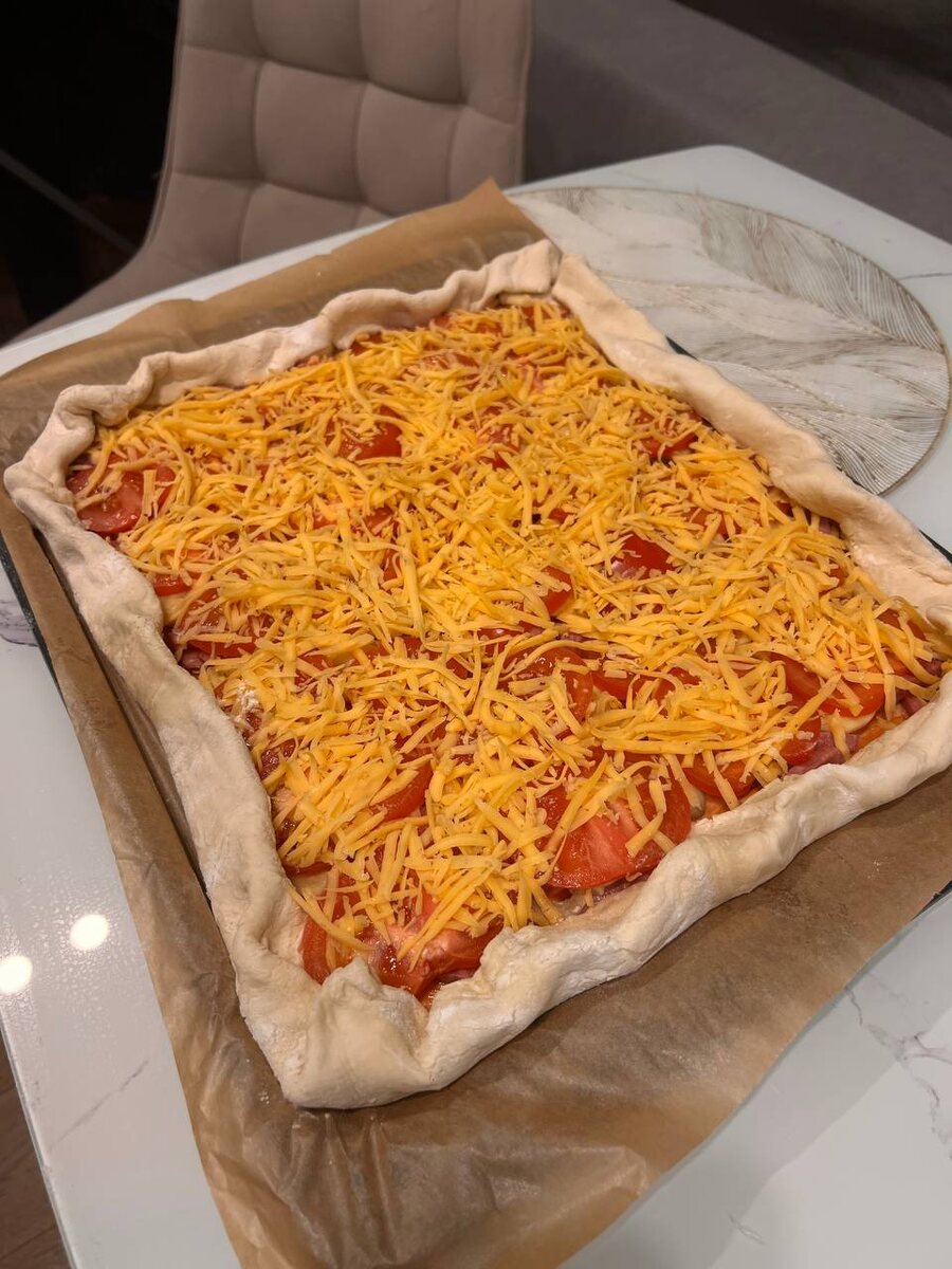 Помню как в детстве еще собирал ее дома с мамой, потом уплетал, запивая черным чаем с сахаром 😋 Рецепт: - слоеное без дрожжевое тесто - копченая колбаса - шампиньоны маринованные - помидоры - сыр В духовку на 30-40 минут и готово ✅