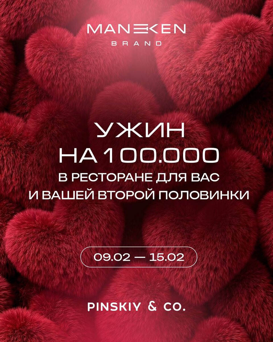 ! ужин в сети ресторанов Pinskiy & Co для себя и своей второй половинки 🤍 участвуют все чеки от 40.000₽ в наших офлайн магазинах Москвы с 9 - 15 февраля выберем трех победителей! 1 место: 50.000₽ 2 место: 30.000₽ 3 место: 20.000₽ *сертификат действует до конца месяца