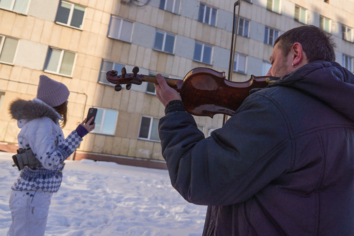Скрипач оперного театра Ильдар Жалилов дал небольшой концерт под окнами Родильного дома № 3 в Челябинске. Сыграть его попросил старый друг Роман, у которого тогда, в января 2021 года, родилась дочка Маша – уже пятый ребенок в семье. На радостях счастливый отец решил поздравить свою жену Светлану и попросил Ильдара сыграть её любимые песни — «Пусть бегут неуклюже», «Вези меня, извозчик» и песни о любви. Роман пришел к роддому вместе со скрипачом и своими старшими детьми — Ариной, Георгием и Анной. Главная сложность была в том, что в роддоме карантин, открывать окна нельзя. Поэтому мы встали под окнами, начали играть и снимать прямой эфир в соцсетях. Светлана смогла не только увидеть представление в окошке, но и послушать, — рассказал «Хорошим новостям» Ильдар. Изначально Роман планировал концерт для жены Светланы. Но, конечно, когда музыкант начал играть, к окнам подошли и другие мамы, а вскоре к ним присоединились и врачи роддома. Несмотря на то, что концерт шёл в Интернете, мы все усл