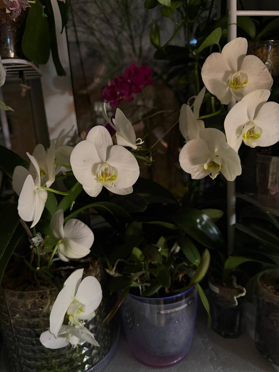 … Сегодня перебрала все орхидеи 🌷 . Пару выкинула, безнадежных, не хочу возиться. Несколько пересадила (сгнили корни). Переставила орхидеи в стекле ближе к батарее и подальше от стекла окна остальные, так как ребенок созрел ночевать в своей комнате, нужно чаще проветривать. По итогу поняла, что я сильно засушивала орхидеи этой зимой 😨 боялась перелить. От стекла сильный холод, от края окна - жар батареи. Не могла поймать баланс. Перебрала и полила остальные растения 🌱 Алоказии растут, но пересаженный Дыхание дракона помер. Хойи разрослись, думаю снять видео до/после и за какое время. И через какое-то время еще раз повторить. Да и пересадить их тоже бы пора. Видео не снимала, хотелось сделать побыстрее. Уф, только от того как болит спина, осознала как же много у меня зеленых друзей) Целый день нон-стоп. А меня не было всего 4 дня🫣😸