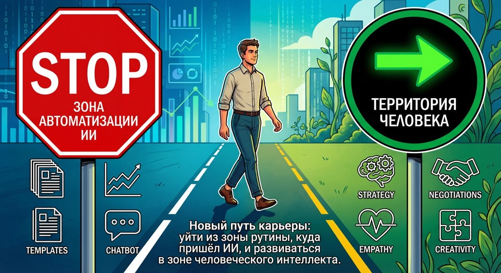 Страшилки о тотальной безработице — это шум. Реальность тоньше и интереснее. ИИ не заменит вас. Он перерисует карту ваших ежедневных задач, и наша цель сегодня — понять, куда на этой карте двигаться, чтобы остаться незаменимым.