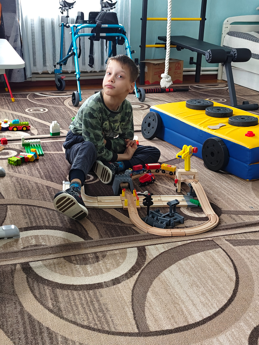 После ужина Сеня постоял в вертикализаторе, подтягивался, затем дети играли в гаджеты.
