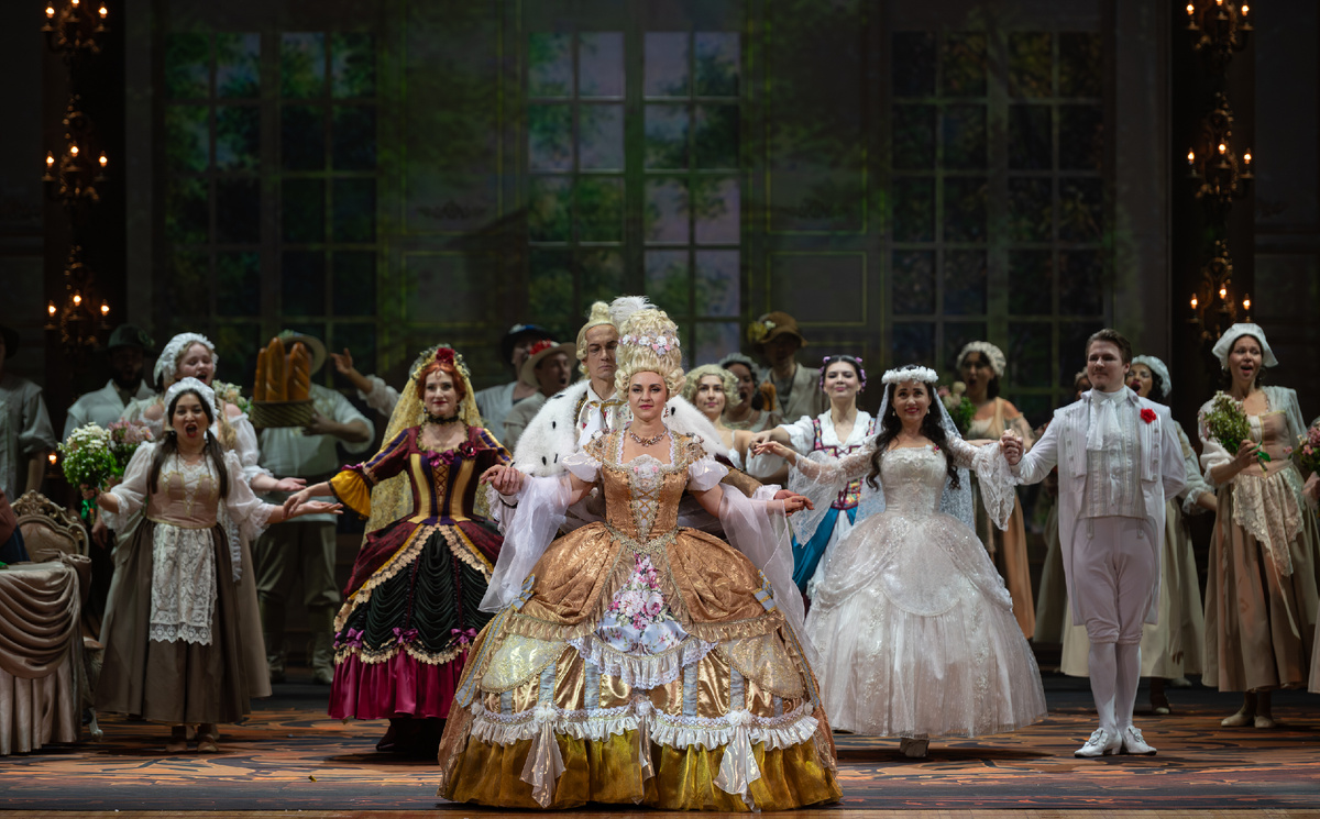 Но это скорее - «претензии» к визуальной стороне новой работы: она по-настоящему красива и эффектна и сразу задает настроение — вы в классической опере. Пространственное решение таково, что на сцене просторно и много воздуха, графские покои и сад обширны и ничто в них психологически не давит: при этом огромные двери в залах дают возможность обыгрывать многочисленные буффонные ситуации этой комедии положений. Немалая заслуга в этом у световика Сергея Шевченко — его работа еще облагораживает картинку в целом, делая мягкие, но уверенные акценты там, где требуется. Добавила своего и хореограф Надежда Калинина — пластика и танец (его немного в спектакле, но как краска — он очень к месту) то элегантны, то искрометно комедийны, но в любом случае уместны.