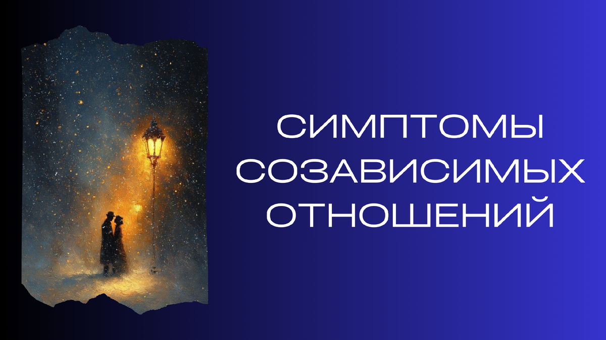 Симптомы созависимых отношений: В отношениях нет никаких границ. Один воспринимает другого как беспомощного и несостоятельного, а себя — как взрослого и «личностно развивающегося». Хотя это совсем не так. Это детский комплекс превосходства, который у созависимого перекрывает комплекс неполноценности, и ощущение «я никому не нужен». Созависимый всё время толкает партнёра к личностному росту, мотивирует развиваться (что как раз и является недоразвитием созависимого, который считает себя «развитым» человеком). Созависимый не может представить жизнь без другого человека. Если он представит, что он останется один и его бросят, то у него включается тревога и паника. Расставание воспринимается как «конец жизни», «рухнули все планы», «больше ничего не будет», «без другого жизни никакой нет». Когда партнёра нет долгое время рядом или они поссорились (созависимый сам создает конфликты претензиями), созависимый не может ничем заняться, только на короткое время, ощущает пустоту и не может найти с