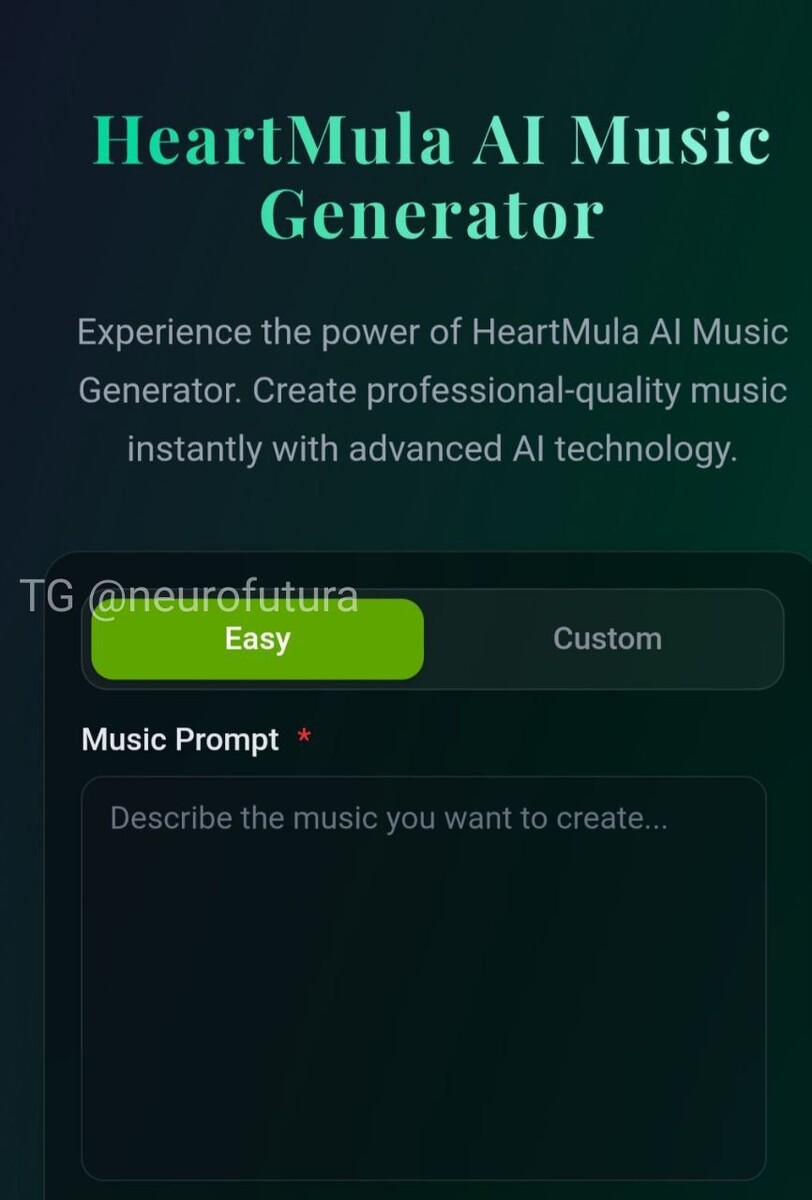 Это бесплатный опенсорс-сервис HeartMuLa. Этот инструмент позволяет создавать музыку на уровне профессиональных платных ИИ-студий. HeartMuLa — это своего рода музыкальная студия «всё в одном». С его помощью можно: создавать треки по текстовому описанию; делать песни в стиле любимых исполнителей; работать с готовыми аудиофайлами. Функционал HeartMuLa: Встроенный чат-бот пишет тексты песен. Сервис генерирует треки с вокалом и текстом длительностью более 4 минут. Можно загрузить любой аудиофайл, и нейросеть перенесёт его настроение и стиль в новый трек. Для работы подойдёт даже компьютер со слабым «железом»: локальной версии потребуется всего около 3 ГБ видеопамяти. Интерфейс HeartMuLa простой и понятный. Для установки локально, качаем тут с github Наш телеграмм канал t.me/neurofutura