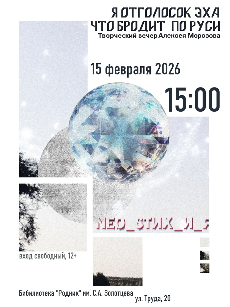 В библиотеке «Родник» имени С.А. Золотцева состоится творческий вечер псковского поэта и автора-исполнителя Алексея Морозова «Я – отголосок эха, что бродит по Руси». Об этом "МК в Пскове" сообщили в Центре творческих индустрий Пскова. В программе — исполнение авторских стихов и песен при участии местных бардов и композиторов. Мероприятие начнётся 15 февраля в 15:00. Вход для всех желающих свободный.