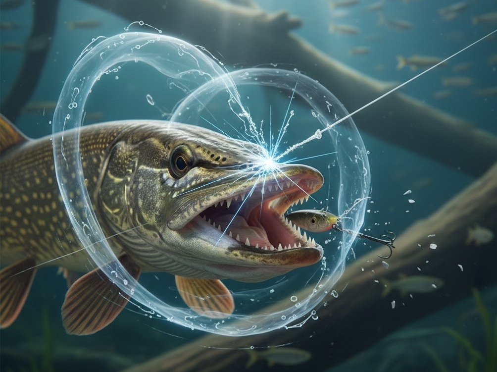 Угол атаки: Зубы щуки расположены под таким углом, что при резком движении челюстей леска попадает между ними, как между лезвиями ножниц. Даже если леска не порвётся мгновенно, она будет подвергаться постоянному трению и давлению, что неизбежно приведёт к её разрушению.