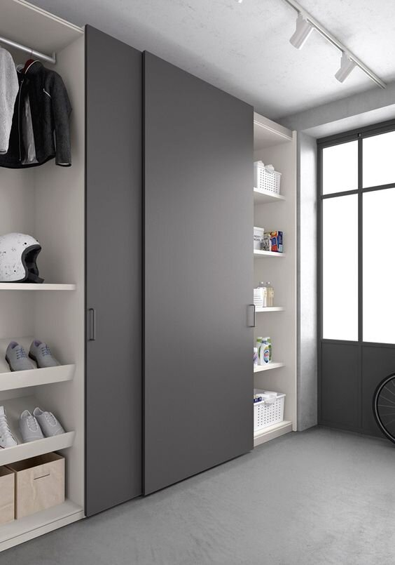 Когда у вас есть место, есть ниша (или гардероб в нише) и желание все это закрыть и иметь простой доступ туда, то берем створки-купе. Не шкаф, а просто створки.
