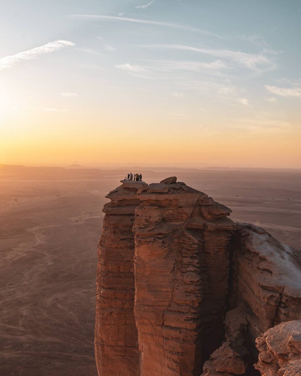 Привет-привет моим любимым читателям-путешественникам! Сегодня отправляемся исследовать одно из самых невероятных мест нашей планеты, которое буквально завораживает своей первозданностью и магической атмосферой — Edge of theWorld ("Край света") в потрясающей Саудовской Аравии. 🌍 Где находится этот волшебный край? Расположенный всего лишь в паре часов езды от столицы Эр-Рияда, "Край света" представляет собой удивительный природный феномен — гигантские скалы высотой около 100 метров над глубокими долинами пустыни Аль-Нафуд. Такое ощущение, будто природа решила создать границу между небом и землей, сделав её видимой каждому путнику. ✨ Почему стоит посетить Edge of the World? Во-первых, конечно же, захватывающие дух виды. Представьте себе: восход солнца окрашивает небо розовыми оттенками, а закат погружает мир в золотые краски. Именно отсюда открывается уникальная панорама необозримых просторов бескрайней пустыни, окружённой древними скалами, похожими на сказочные замки из другого ми