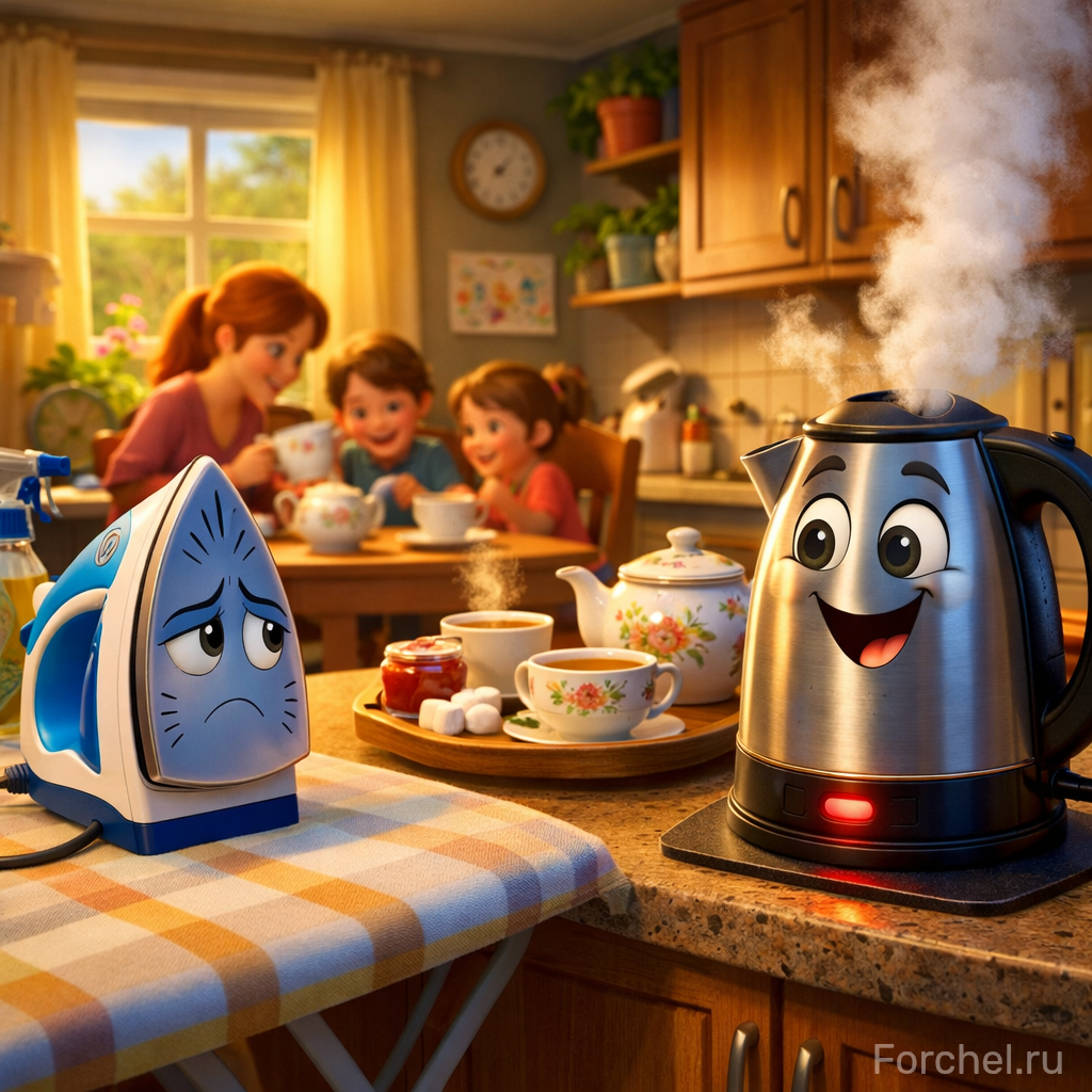 Давным-давно жил-был старый добрый утюг по имени Стёпушка. Работал он исправно, каждый день разглаживал рубашки, платья и брюки. Однако было у Стёпушки одно большое желание: изменить свою жизнь.