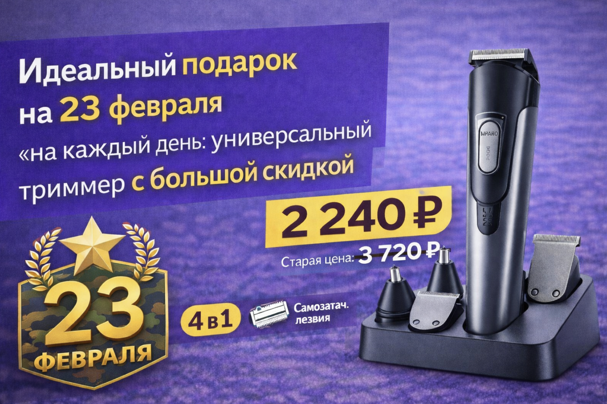 Триммер — как раз из таких: подровнять бороду, убрать волосы в носу, сделать окантовку, привести в порядок тело — и не бегать каждый раз в барбершоп. Сегодня на разборе триммер 4-в-1 “Номер 677” с самозатачивающимися лезвиями. Цена сейчас 2 240 ₽ вместо 3 720 ₽ — хороший вариант “на каждый день” и часто ещё и как подарок. Обычно такой набор закрывает сразу несколько задач: То есть не нужно покупать 2–3 разных устройства. Это про то, чтобы триммер: Но важно понимать: даже самозатачивающиеся лезвия любят чистку и уход. Если нужен недорогой универсальный триммер 4-в-1 для бороды, волос, носа и тела, то модель №677 за 2 240 ₽ (вместо 3 720 ₽) — очень адекватный вариант “лучшее за свои деньги”. 🔗 Партнёрская ссылка на товар: (https://market.yandex.ru/cc/8k3nZN)