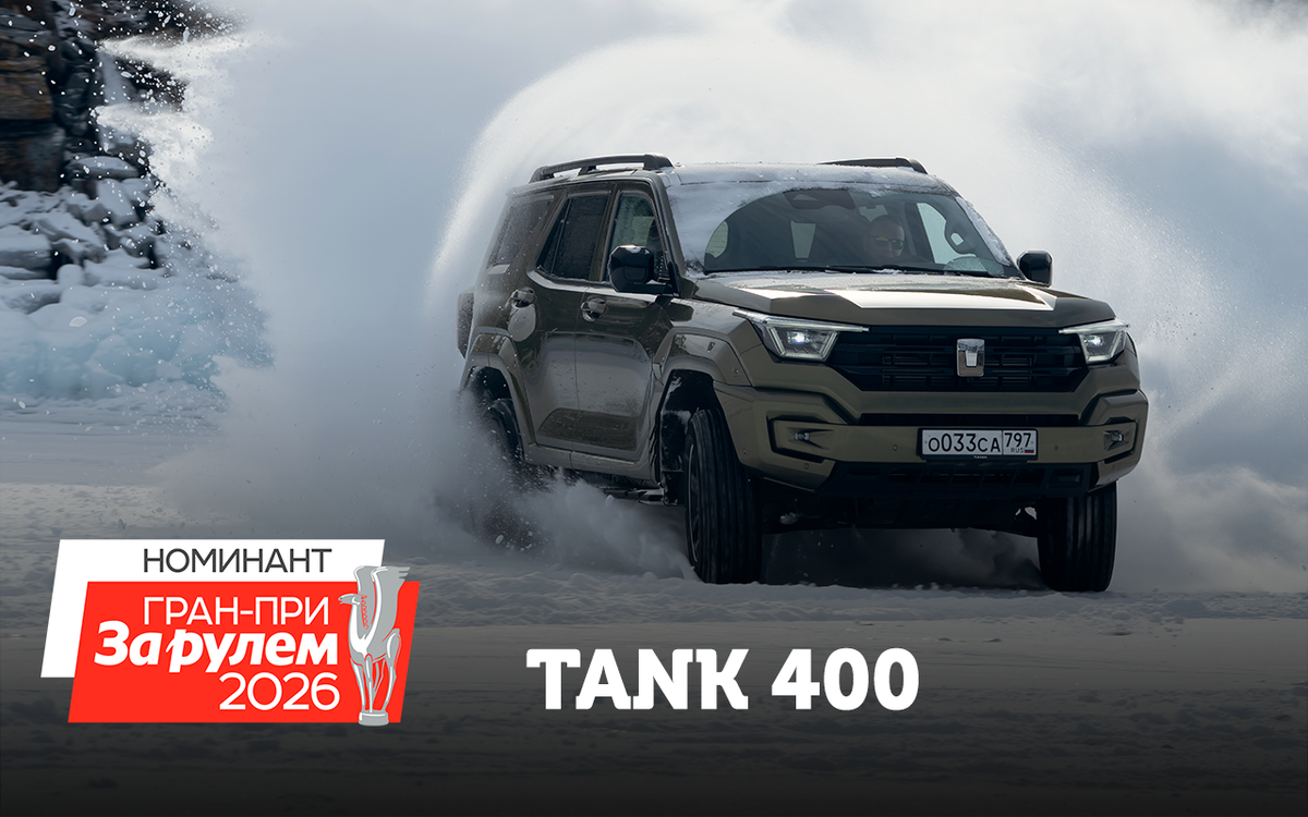 Tank 400 — полноразмерный внедорожник, выпускаемый компанией Tank — внедорожным подразделением Great Wall Motors. Габариты: длина — 4985 мм, ширина — 1960 мм, высота — 1905 мм, колёсная база — 2850 мм. Дорожный просвет: 235 мм. Под капотом расположен бензиновый четырёхцилиндровый E20NB, объём 2 л, мощность 245 л.с., крутящий момент 380 Н·м. За этот или другие автомобили можно проголосовать по ссылке. Генеральный партнер премии Гран-При «За рулем» – Холдинг «Кордиант». Подпишитесь на «Кордиант» в Дзен Реклама, АО «Кордиант», ИНН 7601001509, erid F7NfYUJCUneTUSwZVCHk
