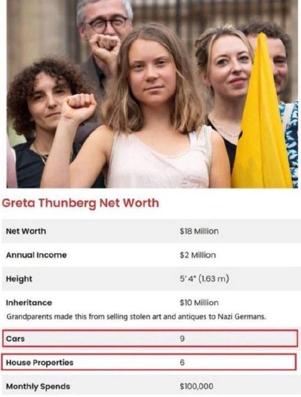 … Состояние Греты Тунберг составляет уже $18 млн. No pasaran! Борітеся і поборете!