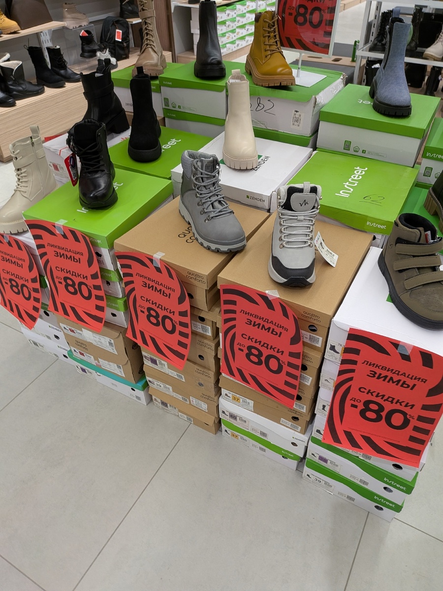 Мимо такой надписи и вовсе не удается просто прошагать мимо, конечно же взгляд сразу останавливается, поскольку первое же предположение, что обувь тут будет стоить 999 рублей. Правда важно вовремя увидеть это маленькое "до", дабы понимать, что подобный ценник - минимальный, который мы можем здесь встретить. Ботинки с виду вполне нормальные на повседневку, радует что представлены разные цвета.