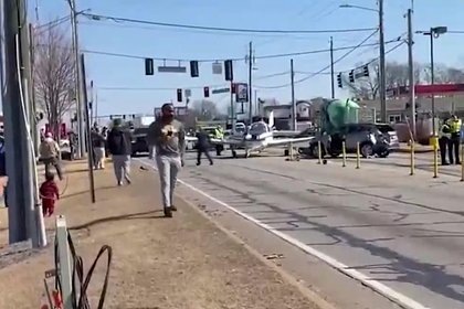 Самолет врезался в автомобили во время экстренной посадки на дорогу.