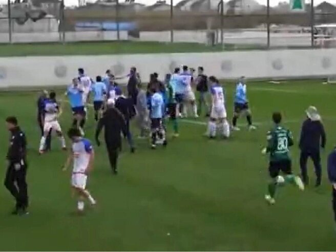 Контрольный матч на сборах в Турции между «Крылья Советов» и «КАМАЗом» закончился дракой после первого тайма. Матч даже решили не продолжать. Настолько массовой была драка. Вот что по этому поводу сказал главный тренер «КАМАЗа» Антон Хазов. «Эмоции, мы никого не осуждаем. Конечно, хотелось доиграть. И Самаре хотелось, и нам. Пообщавшись с Мусаевичем (тренером «Крыльев» Магомедом Адиевым. — Прим. ред.), приняли решение, что продолжать не надо. И у них там ограниченное количество [игроков], замен не было. Не надо было накалять. Поэтому довольствовались вот этим таймом. Поведение Рассказова? Я бы не хотел никого оценивать. Надо смотреть видео, что до этого произошло. Еще раз: мы никого не осуждаем, не обсуждаем, не оцениваем. Максимально дипломатичны». Антон Хазов, главный тренер «КАМАЗа». Что можно сказать на этот счёт? Кстати говоря, мы уже высказывали однажды мнение по поводу драки во время футбольного матча среди футболистов. Это тоже был контрольный матч между махачкалинским «Динамо»