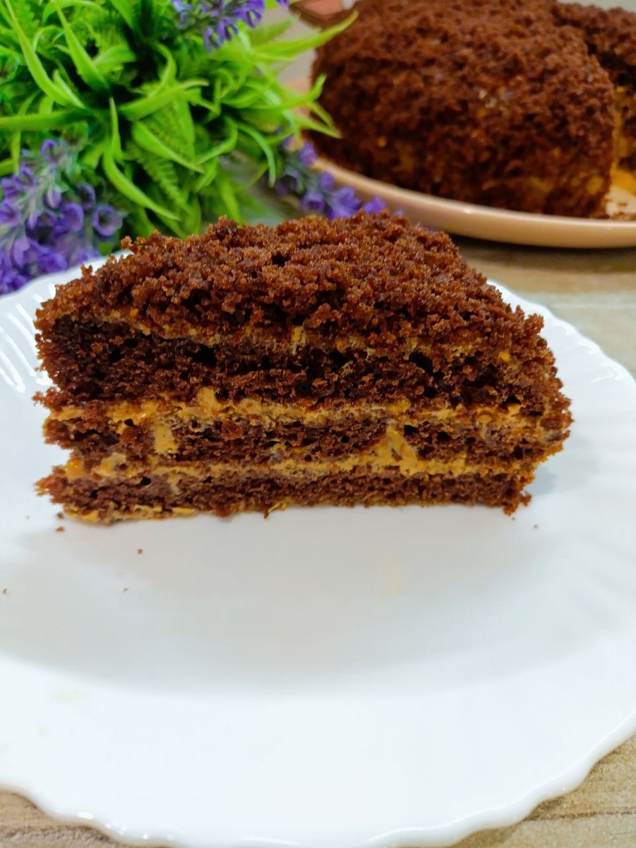 🍫🍰 Делюсь рецептом-выручалочкой. Когда хочется чего-то по-настоящему домашнего. Я пеку этот шоколадный бисквит на кефире. Он получается влажным, пористым, а в сочетании с кремом из вареной сгущенки — это просто восторг! Мои мальчишки называют его «шоколадный ломтик». 🛒 Что нам нужно (на форму 20 см): Бисквит: • Кефир — 1 стакан (берите комнатной температуры) • Мука — 1 стакан • Сахар — 1 стакан • Яйца — 2 шт. • Какао — 2 ст. л. • Растительное масло — 40 мл • Сода — 0,5 ч. л. + ванилин для аромата Крем (самый простой и вкусный): • Вареная сгущенка — 1 банка (380 г) • Сметана (от 25%) — 250 г 👩🍳 Приготовление: 1. В миске венчиком смешиваем яйца с сахаром. Добавляем кефир, масло, соду и ванилин. 2. Просеиваем туда же муку с какао. Перемешиваем до гладкости — тесто должно быть как густая сметана. 3. Выпекаем при 180°C около 40 минут. Проверяем палочкой — она должна выходить сухой. 4. Бисквиту даем остыть, разрезаем на 3 коржа. Верхушку срежьте и измельчите в крошку — она пойдет