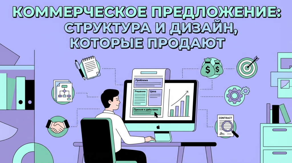 Эффективное коммерческое предложение — это не про красивый дизайн ради дизайна. Это про структуру, которая ведёт клиента от проблемы к решению, и про визуал, который не мешает, а помогает воспринимать информацию.