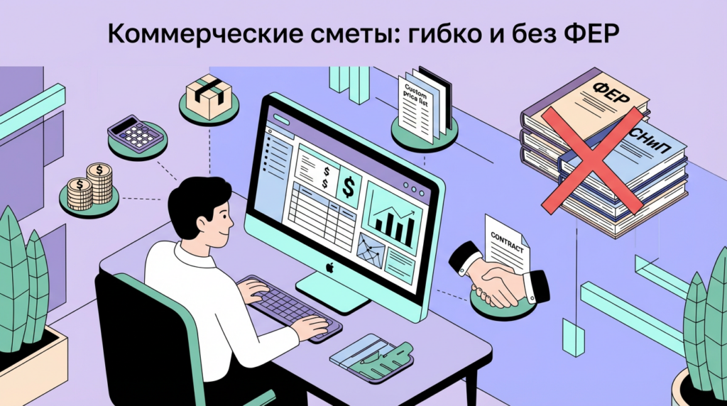 Коммерческая смета — это финансовый документ, который определяет стоимость работ и материалов для конкретного заказчика. В отличие от строительных смет по ФЕР (Федеральные единичные расценки) и ГЭСНам (Государственные элементные сметные нормы), коммерческие сметы не привязаны к государственным нормативам и стандартам.