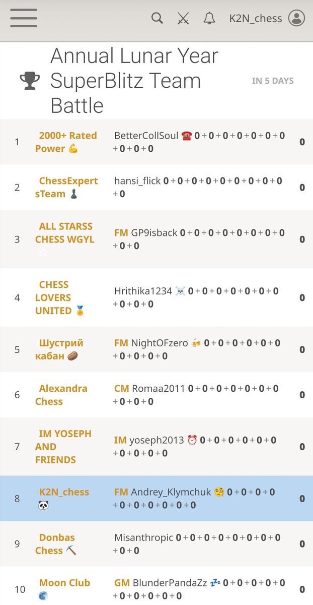 Название турнира: Annual Lunar Year SuperBlitz Team Battle