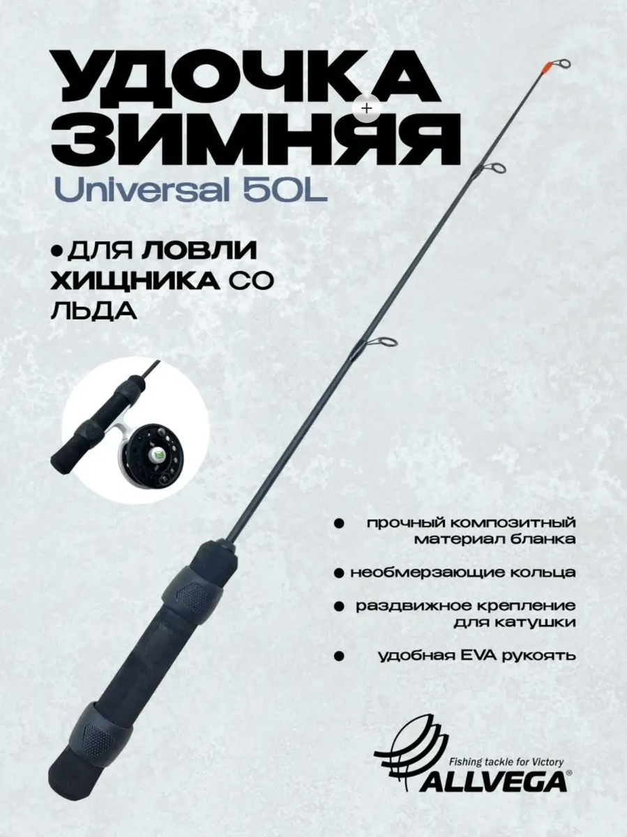 Зимняя удочка ALLVEGA Universal 50L — это тщательно сбалансированный инструмент для активной ловли хищника со льда. Её главная задача — обеспечить комфортное и контролируемое блеснение окуня, судака и щуки на средние по весу приманки. Модель «Universal» неслучайно получила такое название: она создана для рыболова, который не хочет таскать с собой на лёд множество специализированных «прутков», а предпочитает один надёжный и универсальный вариант.