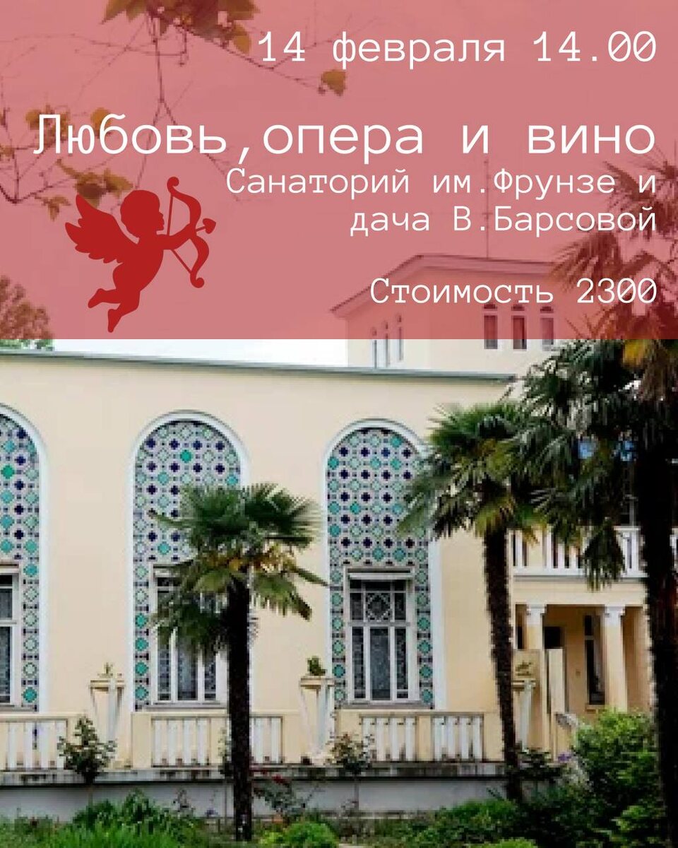 Одна из дач певца Шевелева (которую стоил скандальный губернатор) прекрасно сохранилась на территории санатория имени Фрунзе. Дачевладелец был экстравагантным господином и кичился дружбой с Шаляпиным, которого и зазывал к нам в глушь 😂 Шаляпин Сочи доехал в 1916 году, но город его принял не очень хорошо… Вскоре после поездки в Сочи, Щаляпину пришлось сменить партнершу по оперной партии из-за внезапной болезни певицы. На сцене рядом с ним оказалась…. Будущая сочинка Валерия Барсова. А сколько еще интересных событий случалось в Сочи с нашими героями, и в чем уникальность их творческого пути мы поговорим на экскурсии 14 февраля. А после заглянем в винный бар и обсудим увиденное и услышанное. ⚡️⚡️ старт экскурсии переносим на 14.00 Необходимо предварительное бронирование +79882332270