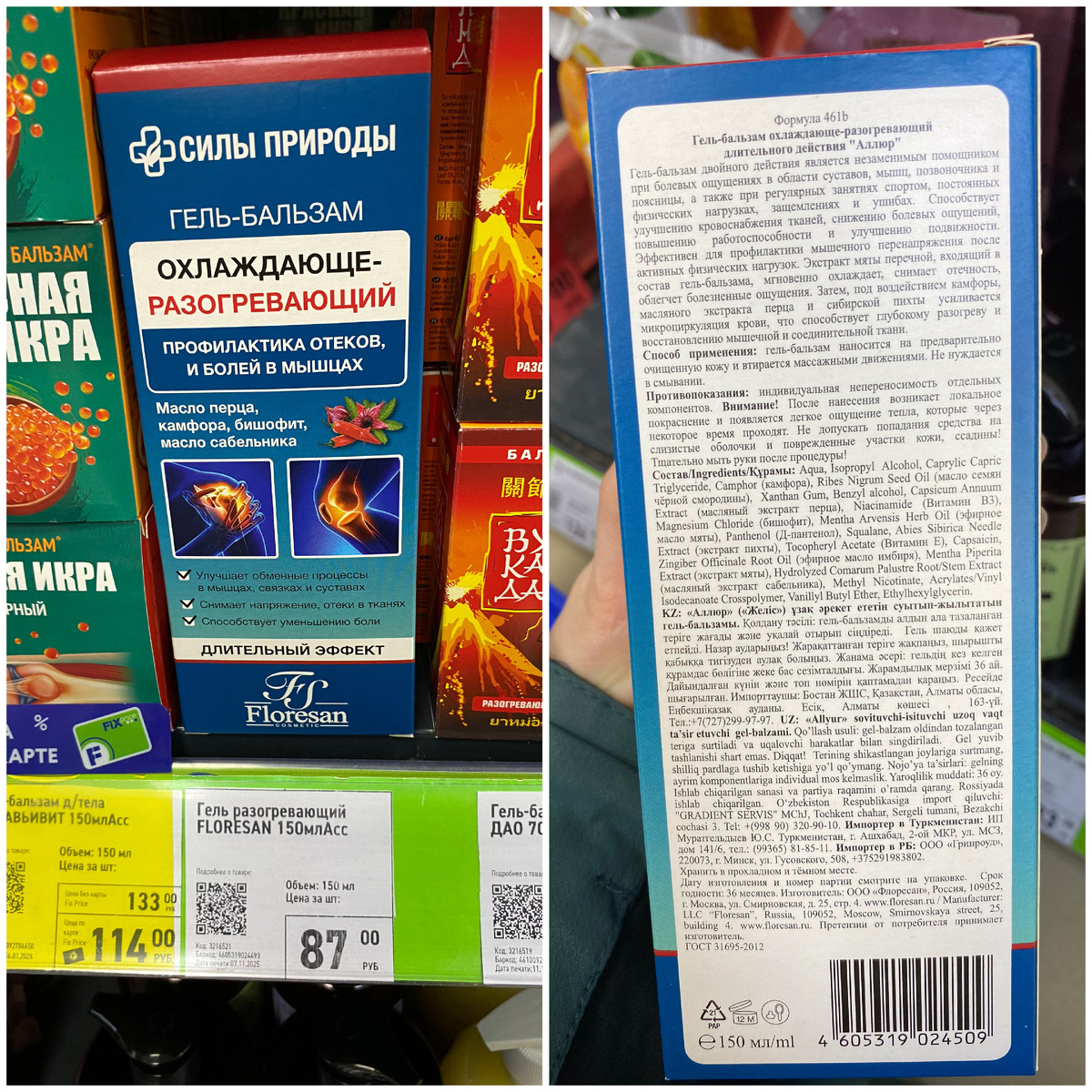 Всем привет. Меня зовут Наталья. Я очень рада видеть вас на своём канале. Сегодня мы с вами прогуляемся по магазину Фикс Прайс, который находится по адресу: город Йошкар-Ола, улица Красноармейская, дом 105. В этот раз я вам покажу разные женские штучки. Так что устраивайтесь поудобнее. Желаю всем приятного времяпровождения. Гель разогревающий FLORESAN стоимостью 87 рублей. его объём 150 мл. Страна изготовления Россия. В магазине 2 варианта: 1. Охлаждающе- разогревающий с маслом перца, камфоры, бишофита и маслом сабельника. Он улучшает обменные процессы в мышцах, связках и суставах; снимает напряжение, отёки в тканях, способствует уменьшению боли. 2. Разогревающий с бишофитом, капсаицином, маслом перца и корицы. Он способствует уменьшению болей в мышцах и суставах; разогревает, улучшает подвижность, снимает напряжение; улучшает микроциркуляцию. Гель-бальзам Вулкан ДАО разогревающий стоимостью 99 рублей. Его объём 70 мл. Густой растительный бальзам обладает сильным согревающим действием