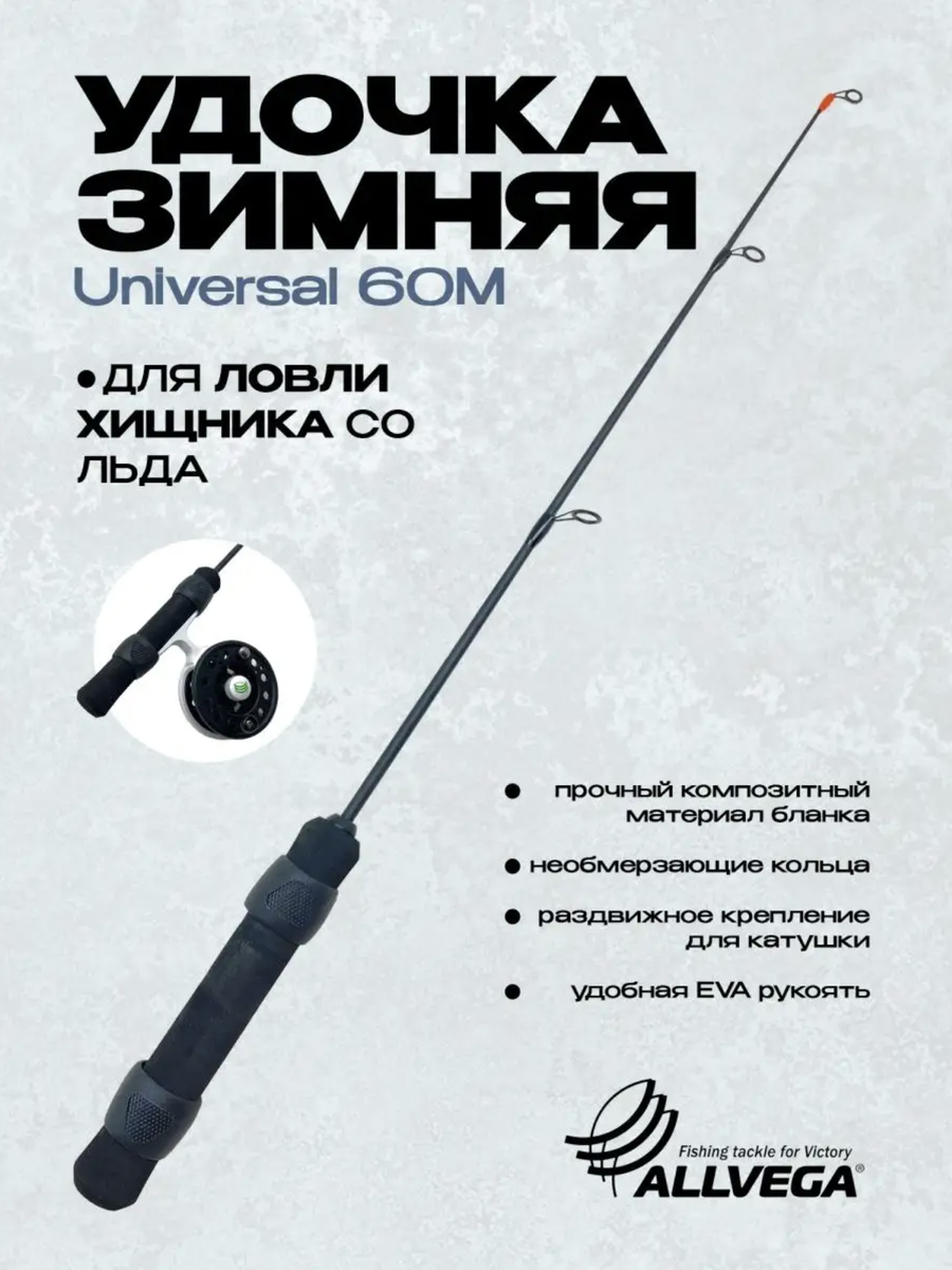 Зимняя удочка ALLVEGA Universal 60M — это специализированный инструмент для трофейной ловли со льда, созданный для испытаний на прочность. Если ваша цель — крупная щука, глубоководный судак или матёрый окунь-горбач, эта модель станет вашим главным оружием. Её конструкция принципиально отличается от более мягких «окуневых» удочек: здесь на первом месте стоит мощь, контроль и способность «пробить» пасть хищника при подсечке.