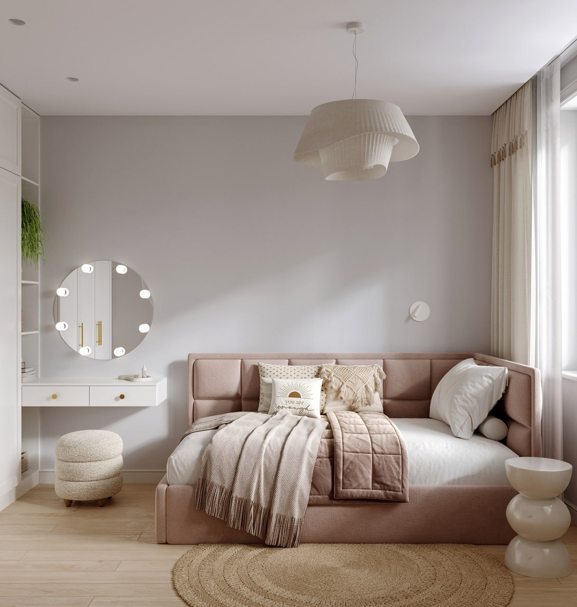 ☀️ Детскую в #градиз_калейдоскоп мы сделали максимально спокойной и нейтральной. 🟢Без ярких «детских» решений, чтобы пространство росло вместе с ребёнком и легко менялось со временем. 🟢Такой подход даёт свободу: девочка сможет добавлять декор, текстиль и акценты по своему вкусу, не привязываясь к заданной теме. 🟢Интерьер получился лёгким, светлым и гибким — без визуального шума, но с потенциалом для будущих трансформаций. Нейтральная база в детской — это инвестиция на годы вперёд. Меняется декор, а не ремонт, что существенно сокращает расходы на интерьер. 📎 Полный проект «Калейдоскоп» смотрите в портфолио на сайте!