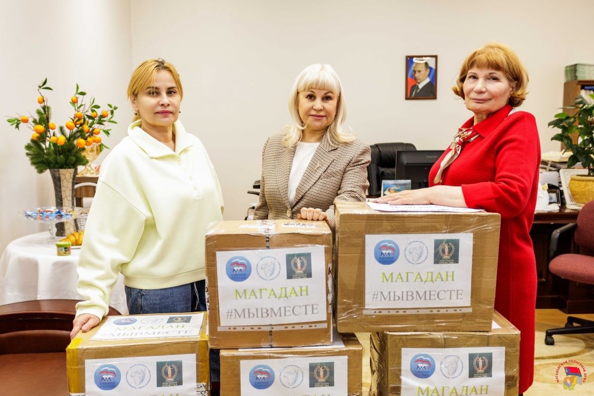 Активисты Центра поддержки семей мобилизованных, действующего на площадке партии, регионального отделения Союза женщин России и магаданского Комитета семей воинов Отечества подготовили для бойцов посылки с подарками. В больших коробках - медицинские аптечки, продуктовые наборы, нательное белье, шерстяные носки, влажные салфетки и поздравительные открытки с теплыми словами благодарности.