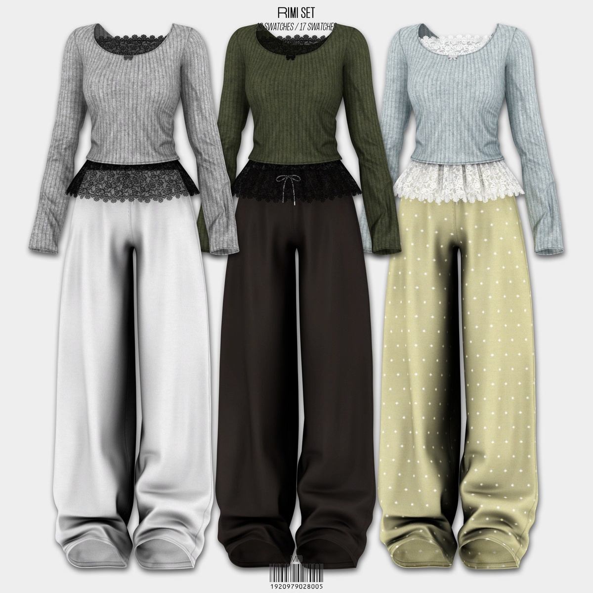 Загрузить модификацию Женский комплект одежды - Rimi Set для Sims 4 - #Кофточка13расцветок,штаны17расцветок@simsfans_ru