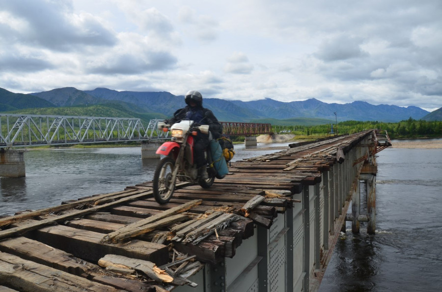 На шпалах кое где лежат доски, служащие направляющими для машин. Однако это мало помогает. Преодоление Витимского моста является трудной задачей. Его длина составляет 570 метров, а высота — 15. Однако самый пугающий параметр — это ширина. Она лишь на десять сантиметров превышает расстояние между колесами грузовика. Для проезда требуется сопровождающий, который идет впереди и указывает водителю правильный путь.