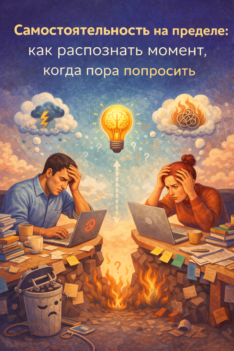 Сегодня много можно услышать о самодостаточности, но почти никто не говорит о перегреве этого состояния. Когда человек пытается «тащить всё сам», он сталкивается не с силой, а с перегрузкой нервной системы. В научных исследованиях пишут, что хроническое недопроси́ть - такой же стрессор, как постоянное давление извне. Мозг воспринимает изоляцию как угрозу. Поэтому важный навык даже не просить, а замечать микромоменты, когда помощь была бы уместна. Это точки, которые обычно проходят незамеченными: когда ты зависаешь на задаче дольше получаса, когда начинаешь раздражаться, когда откладываешь следующий шаг. Именно это является знаком, твоим сигналом. Попробуйте в течение дня ловить такие моменты и задавать себе один вопрос: «Если бы просить было полностью безопасно, к кому бы я обратился?» Сам факт ответа снижает тревожность и возвращает ощущение выбора. Просьба - это не действие, а способ восстановить связь с реальностью и людьми вокруг. Итак, начинаем. Сегодня попробуйте поймать хотя бы