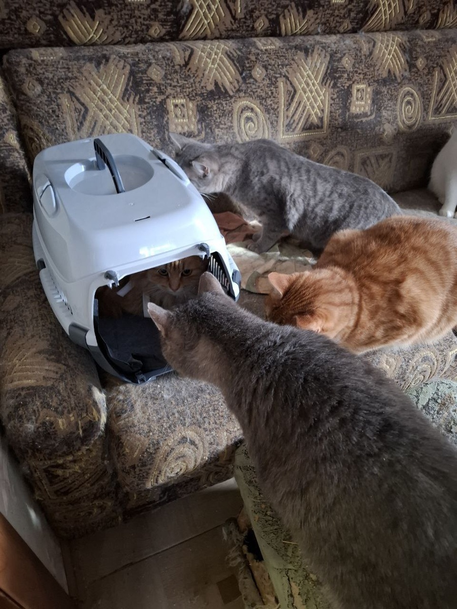 вот бабулины кошки после стерилки поехали ко мне в квартиру на передержку...Мои пацаны вроде даже рады😂 В этом посте есть большое видео, которое не загрузилось в Дзен. Откройте оригинал поста в телеграме, чтобы его посмотреть