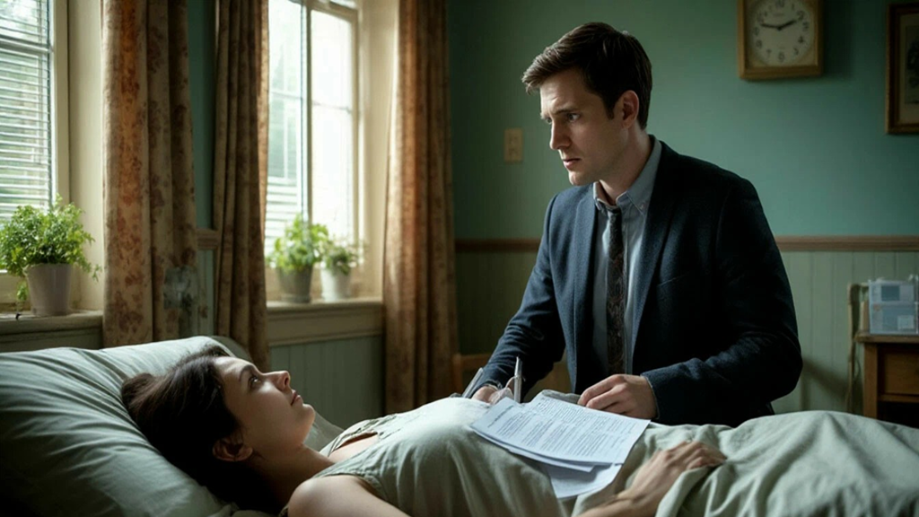 Больничная палата пахла антисептиком и тоской. Светлана лежала на жёсткой койке, чувствуя, как ноет правый бок после падения — «несчастного случая», как назвал это Андрей. Он стоял у окна, отбрасывая длинную тень на выцветший линолеум. В руках держал папку с документами.