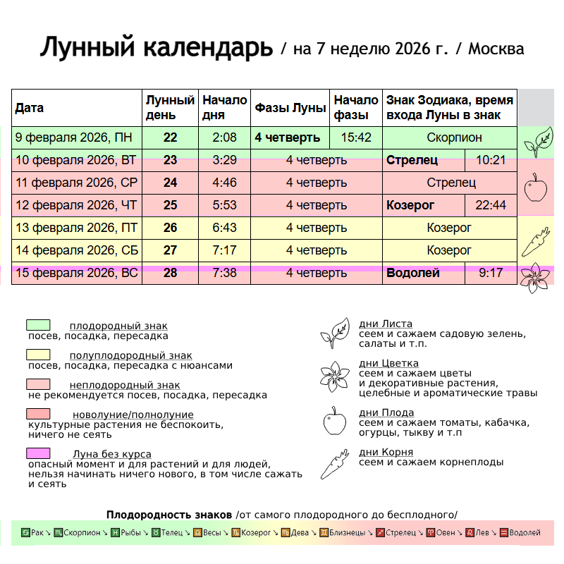 А остальное время так себе, не очень для растений, особенно учитывая, что Луна находится в последней, в 4 фазе. Энергии у всех мало, поэтому что либо сеять на этой неделе я бы не стала. Можно заняться составлением грунтов, ревизией ёмкостей под посевы, установкой дополнительного стеллажа с подсветкой – разных дел масса, не обязательно трогать растения. Можно достать из закромов сокровищницу с семенами и составлять планы на цветение этого сезона, видимо вот этим всем и займусь.