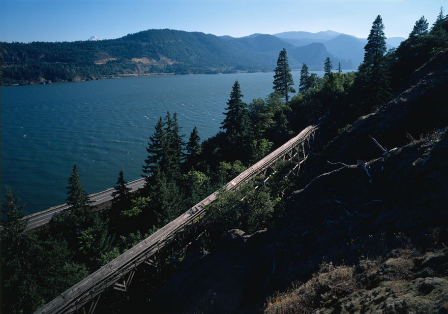 День добрый! Дорогие мои, Я нашел интересный архив фотоснимков одного канала для сплава бревен от места рубки к пилорамам. Уже достаточно давно Я делал хорошую обзорную статью по этой теме, вот она, там есть вся база по этому вопросу и её Я повторять не буду, а просто предложу Вам посмотреть на красивые подробные снимки деревянного канала под названием "Broughton Flume". Он был достроен в 1923 году и использовал воду реки Little Salmon River. Длина канала - 14,5 километров. Сам лоток собран из пихтовых досок длиной 5 метров и толщиной 5 сантиметров. Опоры канала собирались из кедра. Работала эта система аж до 1986 года, а фотографии в этой статьи датируются 2000-м годом, когда часть канала была заброшена, а из некоторых сегментов сделали экспонаты. 1. Проход канала по склону, в верхней части видно как прогнулся лоток канала. 2. Разрушенный участок канала. 3. Сохранившийся участок. 4. Интересная фотография, но не про сам канал, на ней то что называют "Wigwam burner" - "печь-вигвам" - "п