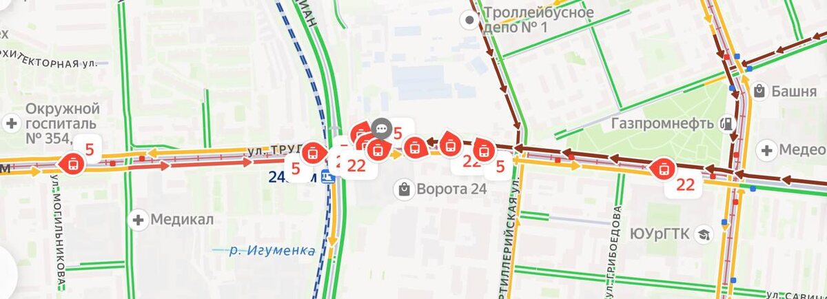 Если утром не дождались своего трамвая, скорее всего он до сих пор стоит у депо № 1 На Первой Пятилетки общественный транспорт попал в пробку. По словам читателей @74.ru, трамвай столкнулся с такси и сошел с рельсов, перегородив дорогу.