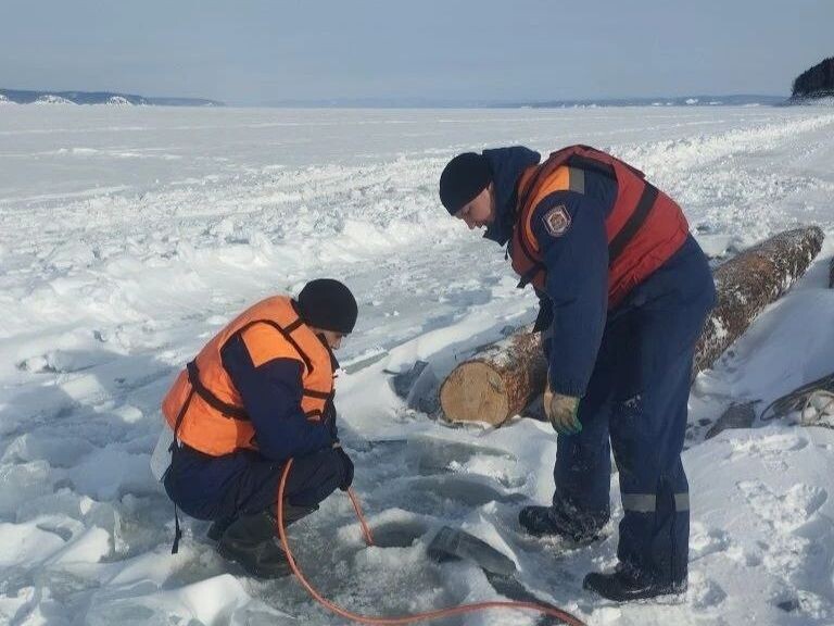 ⚡Автомобиль вместе с водителем ушёл под лёд на Красноярском водохранилище
