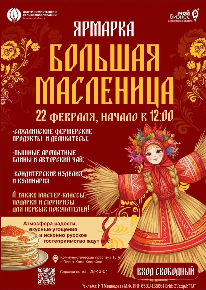 🥞 Приглашаем на ярмарку сахалинских предпринимателей «Большая масленница