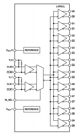 характеристика Рабочая частота 4,8GHz Интегрированный стохастический дрожание 28 fs rms терминал ввода на пластине Двухканальный необязательный дифференциальный вход 3.3 Источник питания V Обзор XHT - 950 представляет собой сверхбыстрый динамический буфер, изготовленный по биполярному процессу из кремния - германия (SiGe). Устройство предназначено для высокоскоростных приложений, требующих низкой дрожания. Устройство обеспечивает два необязательных дифференциальных входа через контрольный вывод IN SEL. Оба входа оснащены центральным отводом, оба - центральным отводом, разностью и сопротивлением терминала на 100Ω пластине. Входной конец принимает LVPECL, CML, 3.3VCMOS (односторонний конец) и вход с переменным током 1,8VCMOS, LVDS и LVPECL. Вывод VREFx используется для обеспечения смещения входных данных с переменной связью. XHT - 950 имеет 10 выходных дисков с логикой связи с полностью качающимися эмиттерами (ECL). Выходная ступень предназначена для прямого привода 800 mV с каждой сторо