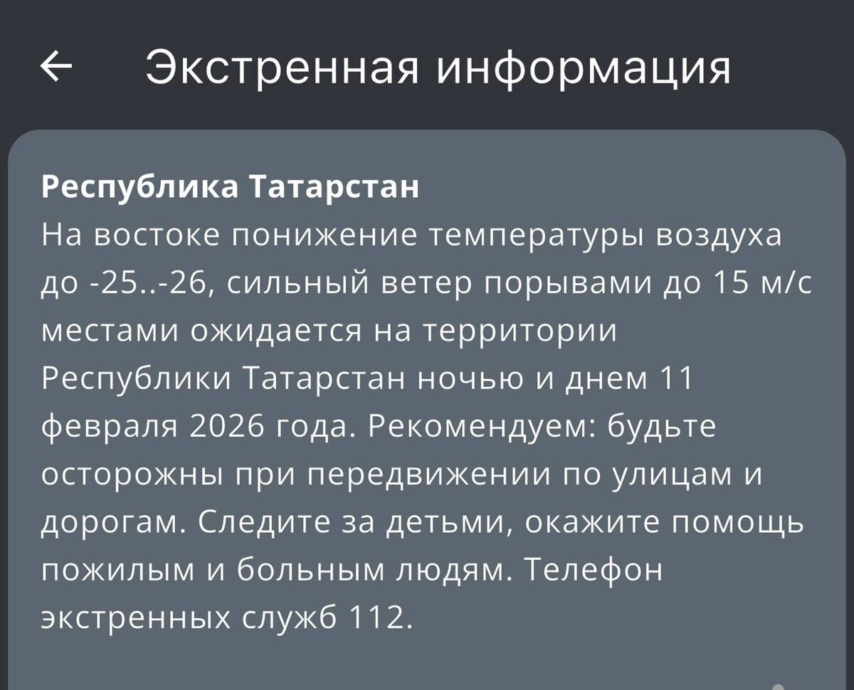 На востоке Татарстана завтра ожидается понижение температуры до -26.