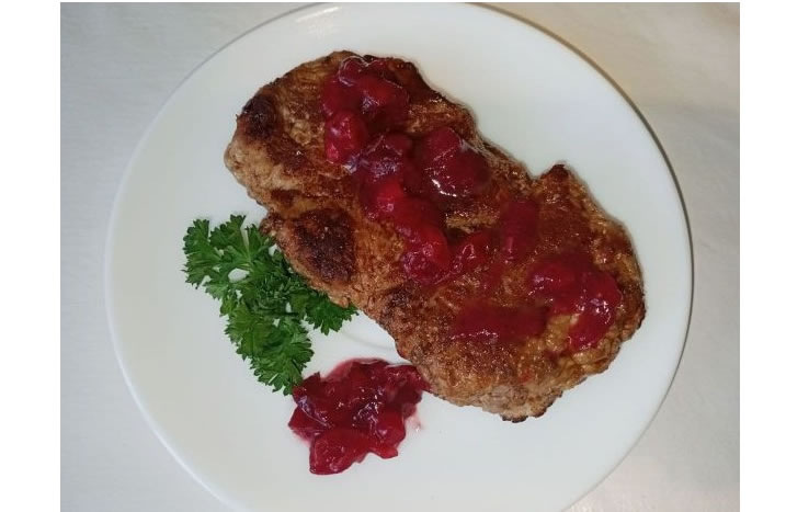 На тарелку выложите гратен, сверху разместите телячьи щёчки в брусничном соусе. Украсьте блюдо зеленью или дополнительными вялеными томатами.Это блюдо хорошо сочетается с сухим красным вином, которое подчеркнёт вкус мяса и соуса.