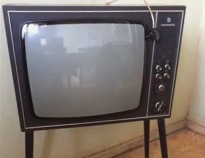 - На передней панели располагались органы управления: ручка переключения каналов, регуляторы яркости, контрастности, громкости и вертикальной синхронизации.